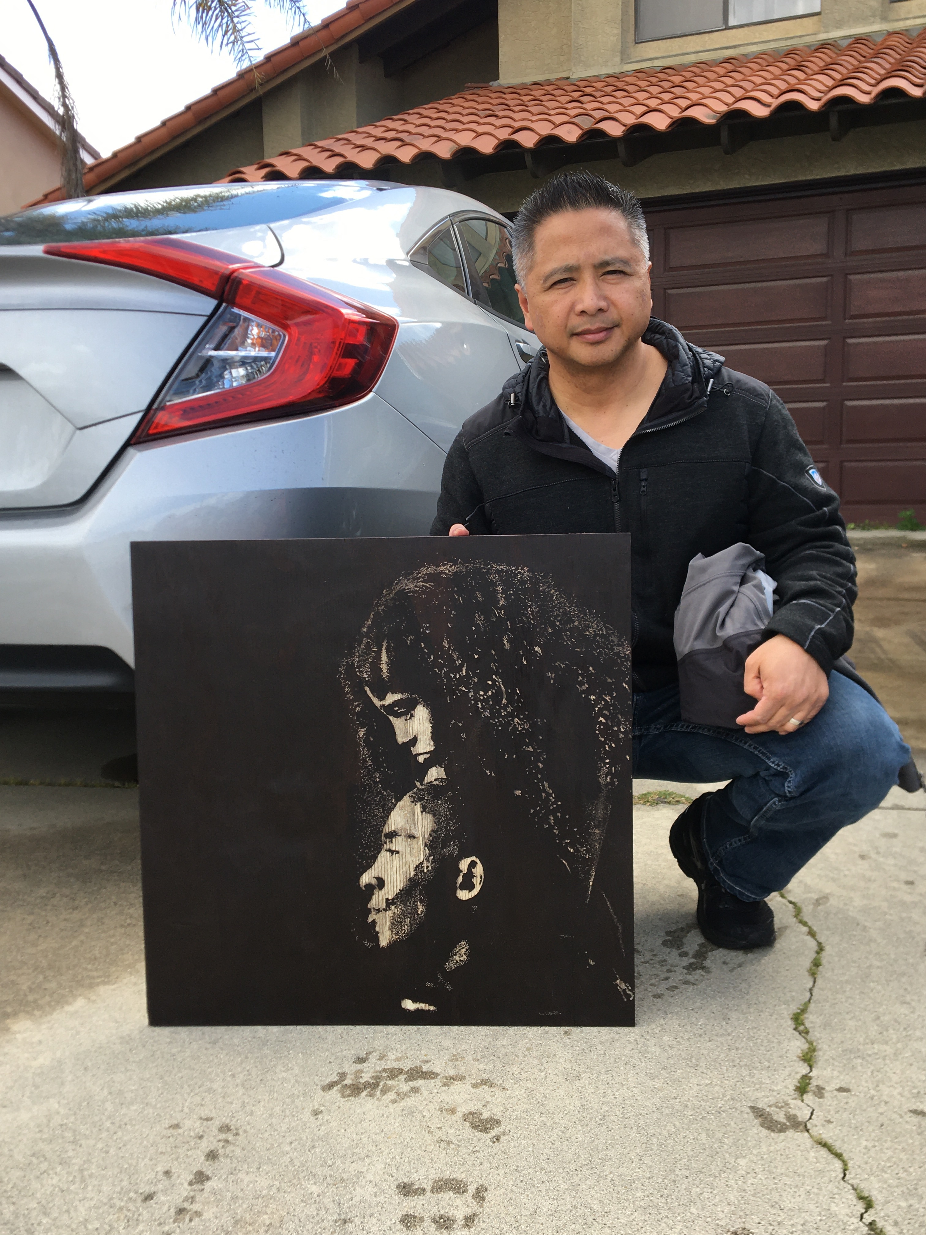 Like so many, I was shocked and saddened by the tragic deaths of Kobe and Gigi Bryant and the others who lost their lives from that horrible helicopter crash. As a way to process, mourn and remember, I decided to create an art piece honoring them. I really didn’t have any plans for the art once it was done but Salette suggested that we auction it off and donate the money to the victims’ families which is what we did.