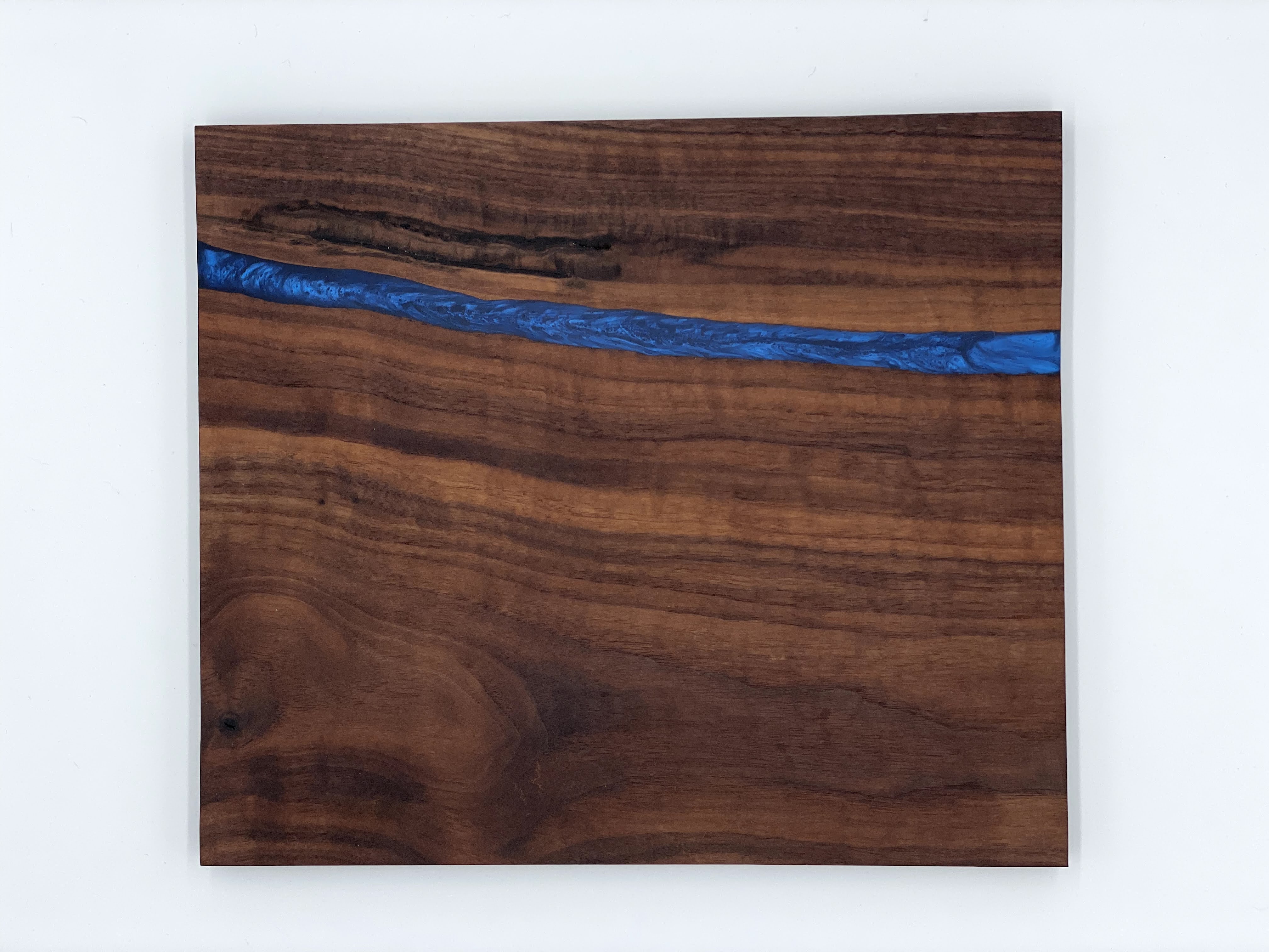 Item 214. Walnut with Epoxy Resin Charcuterie Board/ Serving Tray – $50. ***SOLD***